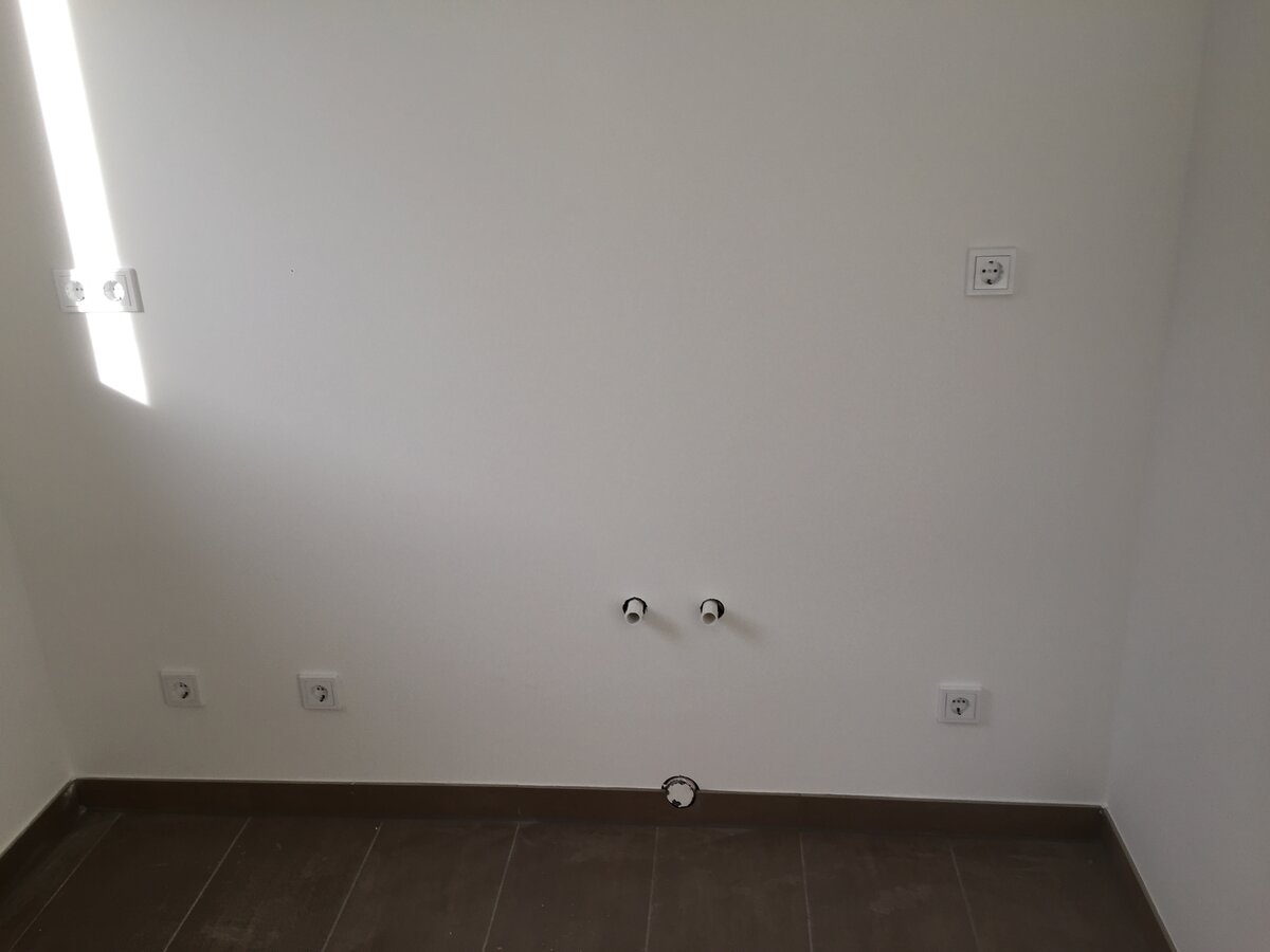 Ursprünglich war der Plan wie auf dem Wohnungsgrundriss vorgesehen. Damit wäre aber nur eine schmale Spülmaschine und eine schmale Spüle reingegangen. Um das ganze zu entzerren, bin ich mit der Spüle ins Eck gegangen, wie auf den Zeichnungen eingezeichnet.