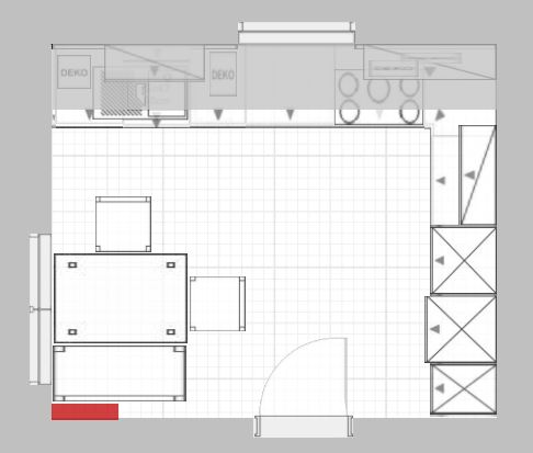 Ein Kühlschrank als Standgerät ist vorhanden und soll nicht intergriert werden (würde übrigens rechts neben BO stehen, gleich hinter der Tür).