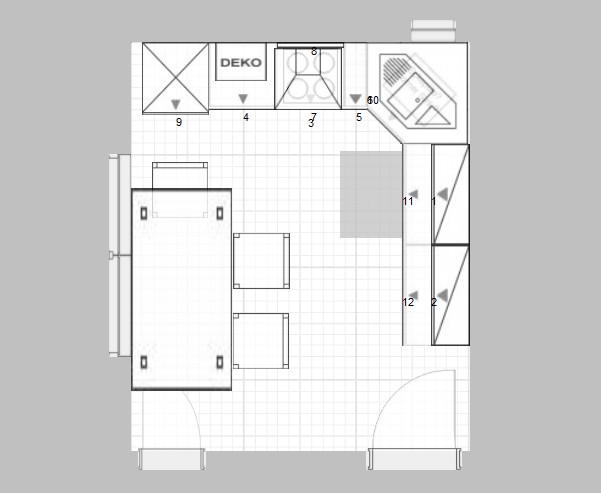 So, ich hab jetzt mal probiert die Eckspüle drin zu lassen, ich denke wenn das ist es so am praktikabelsten mit einem kleinen handtuchunterschrank zwischen herd und Spüle, die GSp neben dem Herd, dann kann man den Müll noch öffnen (gibt es so im Schrank versenkbare Türen? Dann wäre es noch unproblematischer) auch wenn jemand an GSp oder Herd muss.