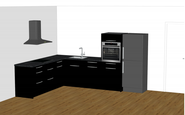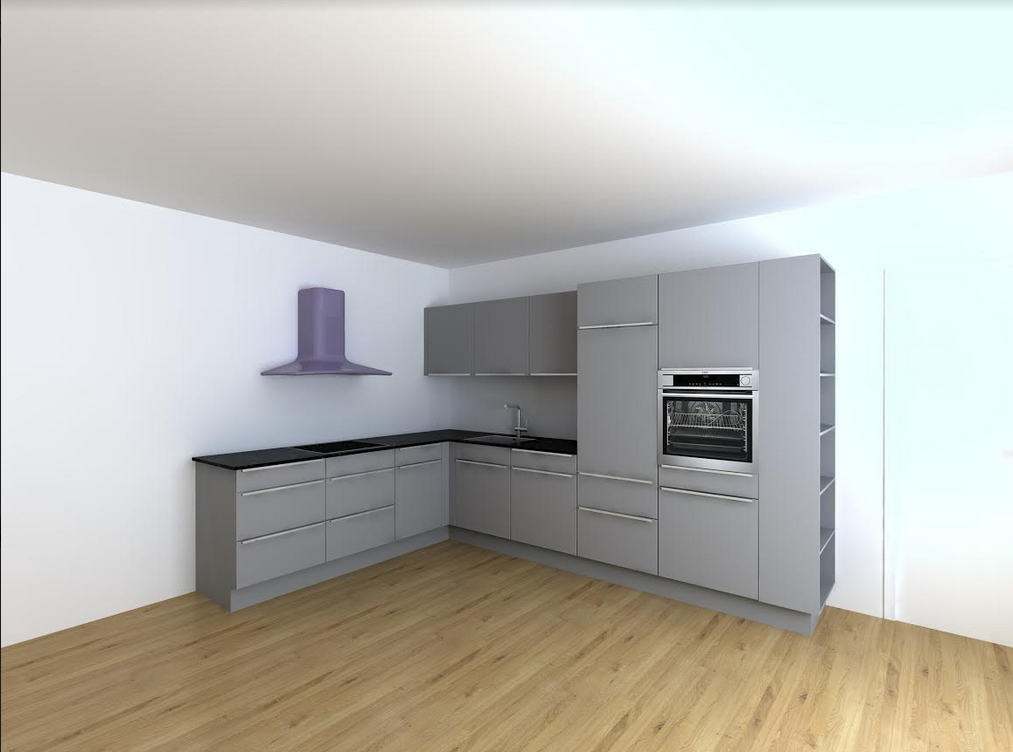 Du springst aber gerade vor und zurück. Farbe und APL Material ist gerade noch zweitrangig. Lass uns erstmal die Form der Küche festlegen, dann in Schränke aufteilen und dann kann man sich Gedanken über Front und APL machen.