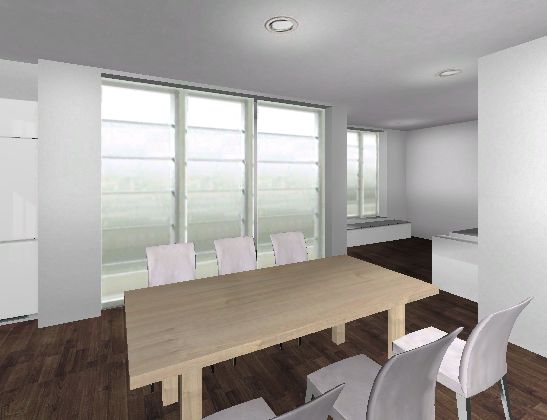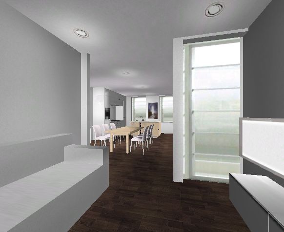 Wohnen jetzt links unten, da paßt sogar das Sofa mit der Recamiere .. Frage ist halt, ob man den Fernseher da unten in der Ecke zwischen den Fenstern haben möchte. Stelle ich mir mit Wandbefestigung vor und vor dem Fenster mit 50 cm Brüstungshöhe dann das Lowboard, teilweise unter den Fernseher gehend.