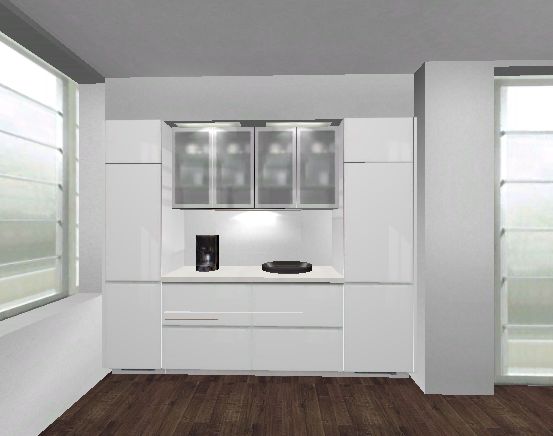 - Am Kopf 100er Auszugsunterschrank mit Doppelbecken, daneben noch ein offenes 15er Element um Handtücher etc. unauffällig aufzuhängen. Im unteren Auszug des Spülenschranks kann Altglas/Altpapier und gelber Sack Müll gesammelt werden. Der obere Auszug bietet noch Platz für die küchenüblichen Putzmittel, Handtücher etc.