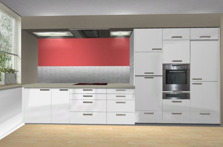 - erhöhte GSP, darüber ein Klappfach in Mindestbauhöhe 45 cm. Platz für eine Standmikrowelle und notfalls mal für ein zweites Einbau-Heißgerät (hat dann leider keine schöne Linienführung mit dem Nachbarschrank)