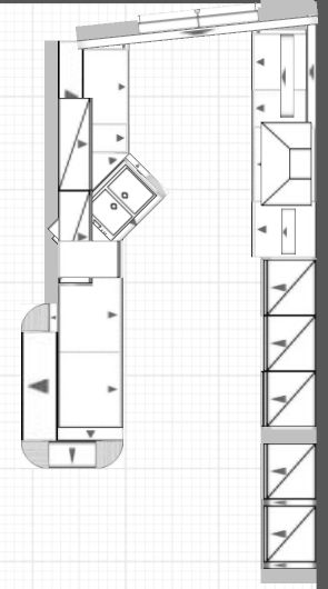 - Dann schräg in den Raum ca. 70 cm in 6rasteriger Höhe der Spülenschrank und ca. 10 cm gerundeter APL-Überstand (hier auch unsichtbar für den Tisch die Möglichkeit Handtücher zu hängen). Spülenschrank nur mit großem Frontauszug für Altglas/Altpapier (was ist mit Gelber Sack Müll?) Dort dann eher eine 80er Spüle von der Aufteilung wie BLANCO AXIA II 8 | BLANCO. Dazu muss die linke Seite vom Spülenschrank ausgeschnitten werden.