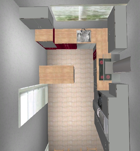 Was mir selbst nicht so gefällt ... die Hochschranklinie versperrt ein wenig den Blick zum Fenster. Andererseits hast du ja bisher dort auch Hängeschränke hingehängt ... hmmm.