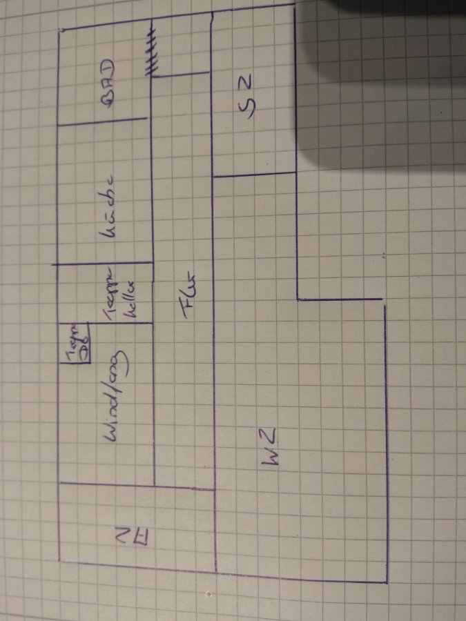Das liegt daran, dass im Erdgeschoss aktuell kein anderer Platz ist. Ich habe deswegen Mal einen Übersichtsplan des Grundrisses gezeichnet.