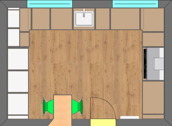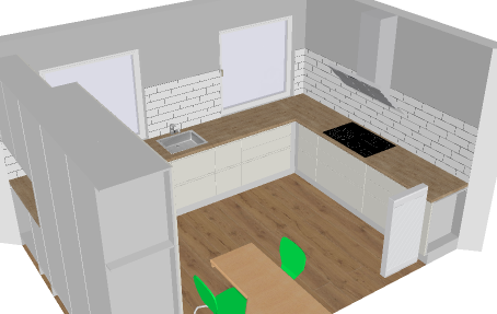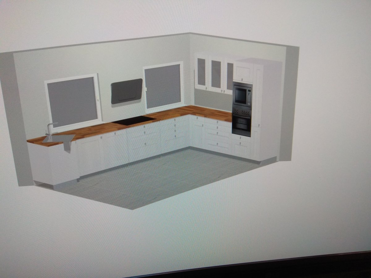 Ich habe deswegen Mal selber ein bisschen "gespielt". Wobei ich da mit den Möbeln nicht passend hingekommen sind, aber das sollte das Küchenstudio ja hinbekommen, wenn ich da mit einer Idee hinkomme.