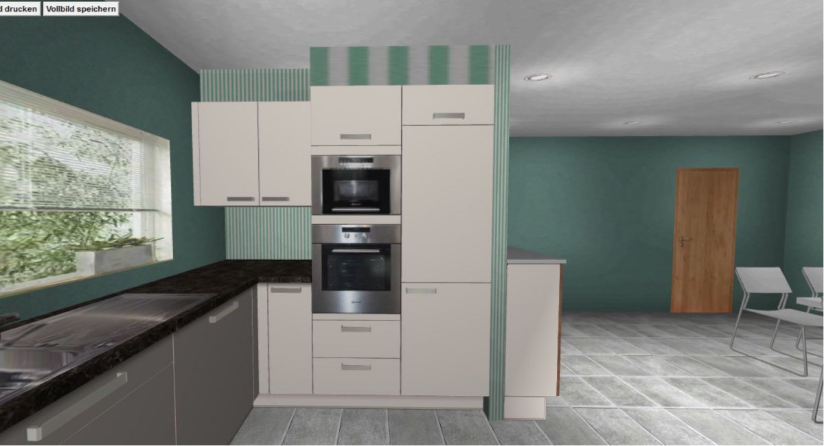 Nun ein klassisches U. Ich bin mir nicht sicher ob es dir gefallen wird. Aber die HS als Highbord an so prominenter Stelle finde ich auch nicht gut und die zwei schmalen Auszugschränke strapazieren nur das Budget. Ich habe als Frontfarbe kaschmir genommen, kommt auf dem PC nicht so gut rüber.
