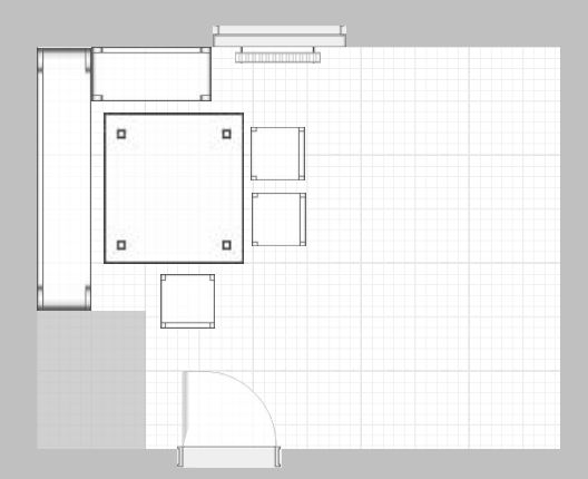 soll es so aussehen, mit einem 140 x 130cm grossen Tisch?