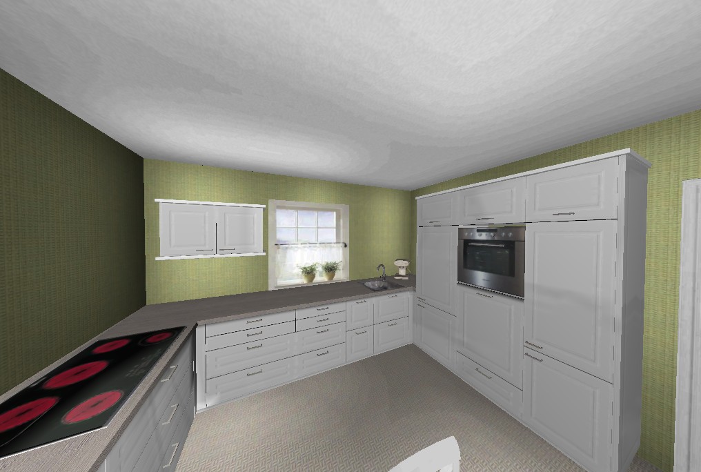 so, nach langer und breiter Diskussion haben wir nun einen Küchenentwurf der halten sollte. Nachdem unsere jetzige Küche zwar schön aber unpraktisch ist(zuwenig Stauraum), wollten wir diesmal schön und praktisch. Begonnen haben wir mit einer Lösung ohne Hochschränke, aber wo stellt man da die hohen Gläser(Weissbier) hin? Dann zwei 39-iger über der Kochstelle, das sieht aber zu modern aus. Also zwei Glasschränke links und rechts vom Fenster, sieht aus wie wollen und nicht können. Also doch wieder Oberschränke durchgezogen. Die nun angestrebte Lösung möchte ich hier zur Diskussion stellen. Die Planung habe ich mit dem Häcker -Planer erstellt, der ist einfach zu bedienen und hat ausreichend Variabilität. Wir wollten eigentlich Oberschränke ca. 50 cm hoch und die Hochschränke ca. 170. Der Berater im Küchestudio hat uns nun zu Hoch-und Oberschränken auf einer Linie geraten, die mit der Fensteroberkante läuft. Meine Frau will eine Eckspüle, der darunter befindliche Auszug mit Motor. Die Geräte, ein komfortabler Backofen , ein Kühlschrank mit Biofrost-Zone ohne Tiefkühlfach, ein leiser Geschirrspüler und ein Induktionsfeld mit Muldenlüftung(Bora ).