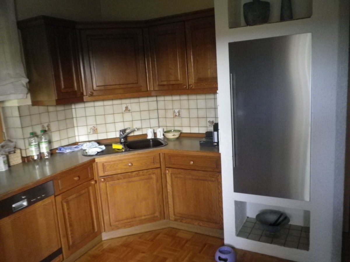 Was stört an der bisherigen Küche und was soll die neue Küche unbedingt können? Warum?: Raumverlust durch vorgebaute Ecklösung, man stösst sich den Kopf an der Dunstabzugshaube