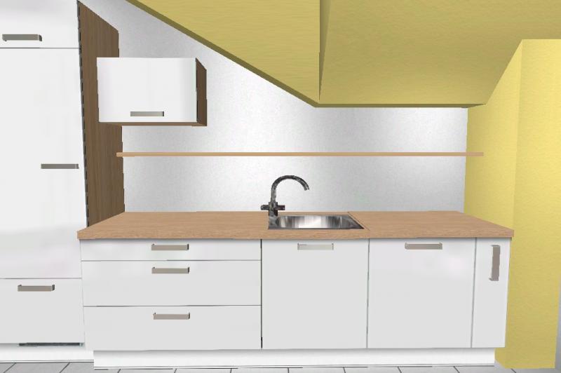 Das gibt vom Stauraum her fast das Gleiche, wie die Eingangsplanung. Arbeitsfläche ist geringfügig weniger. Vorher 325cm freie Fläche, nachher 290cm.