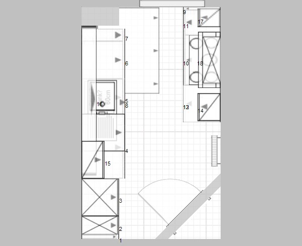 Wo genau ist denn der Wasseranschluss überhaupt? Wird ja irgendwo am Schacht sein. Und bei dem Platz wegen der Toten Ecke kann man durchaus auch mal die Leitungen aufputz etwas verziehen, wenn das die Planungsmöglichkeiten verbessert. Spüle muss also nicht zwangsläufig vor's Fenster.