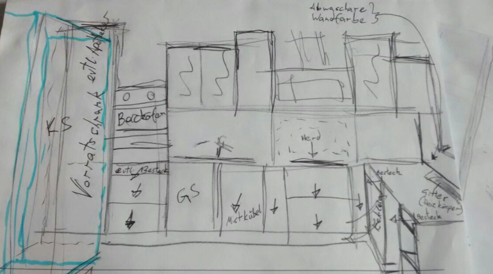 Zusätzlich habe ich heute noch einen Input bekommen, bzgl. eines Einbau einer kleinen Speisekammer. Macht so etwas Sinn? Küche abtrennen und Speisekammer "einbauen".