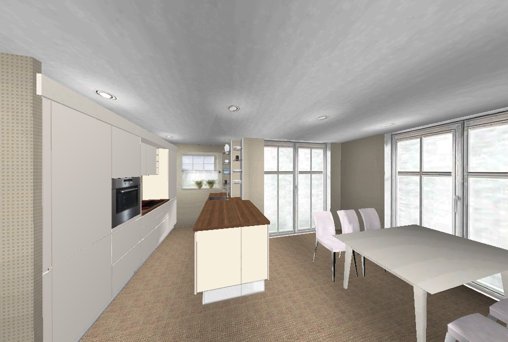 Bestände die Möglichkeit die Küch nach planunten zu verlegen? Die Wasseranschlüsse sind ja durch das angrenzende Bad problemlos zu verwirklichen.