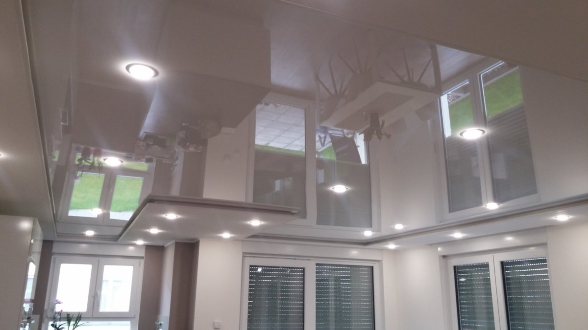 Glänzende Spanndecke erweitert durch die Spiegelung optisch den Raum. Würde ich bei kleinen Räumen empfehlen. Es gibt glaube ich auch matte Spanndecken, einfach googeln.