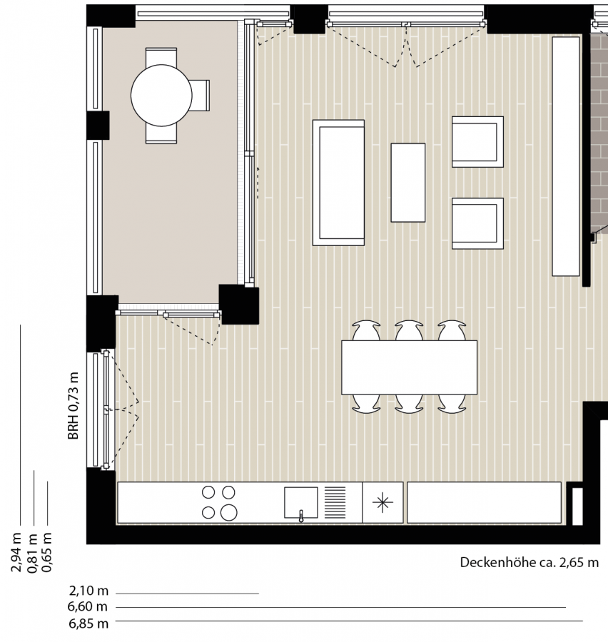 Brüstungshöhe des Fensters (in cm): ca 73 cm ansonsten Bodentief