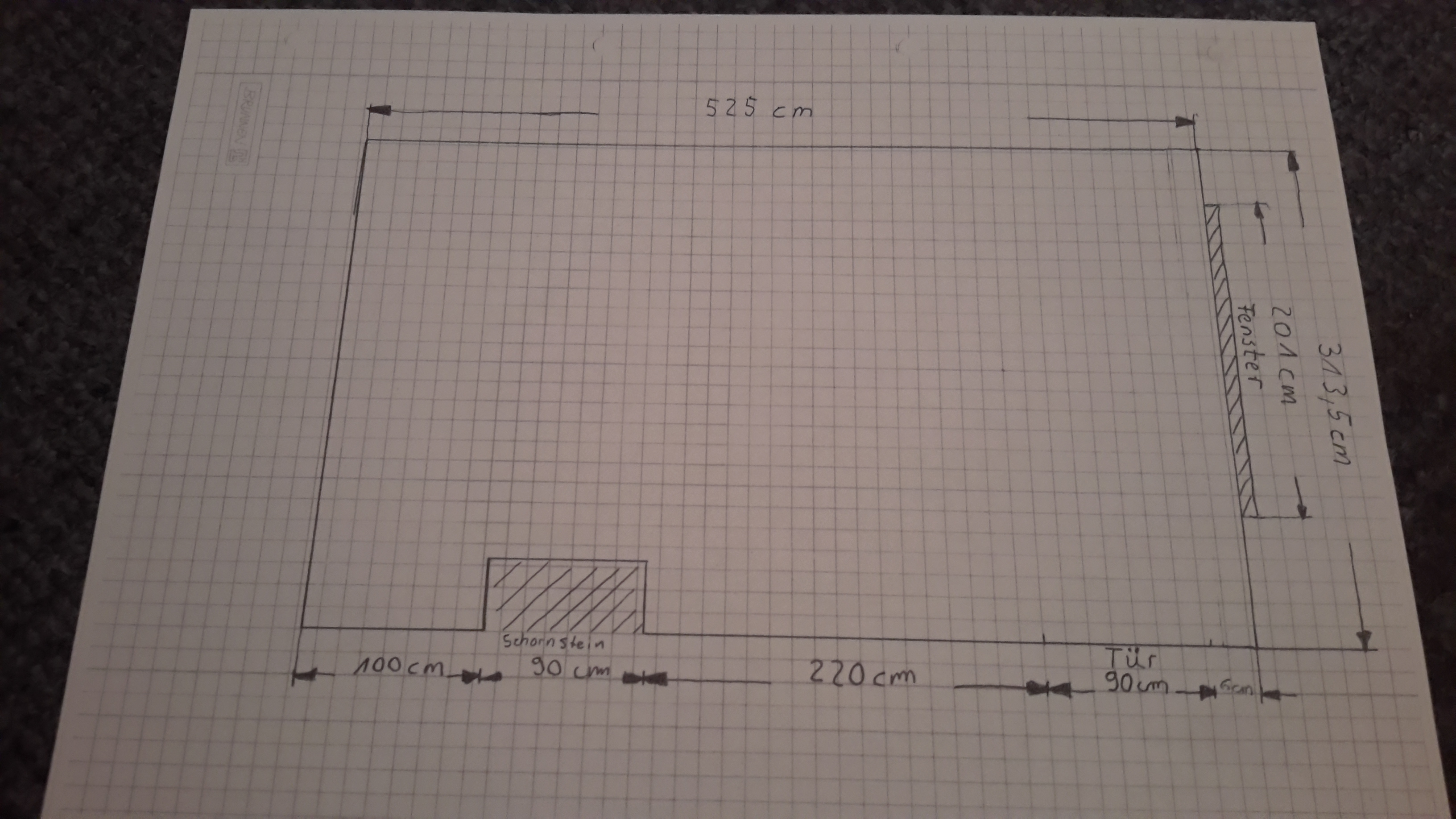 Ich habe euch den Grundriss angehängt zur Ergänzung gegenüber dem Fenster geht's noch ins offene Esszimmer also neben dem Schornstein geht's noch weiter ins offene Esszimmer.