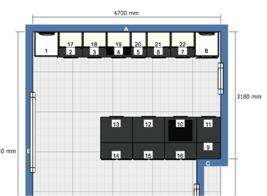 Körpergrößen aller Hauptbenutzer in cm (wegen Arbeitshöhe ): 174 und 190