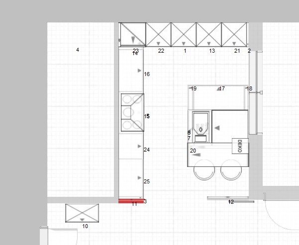 Auch in der Ausführung halte ich die Kochzeile hinten für praktikabler, weil du da die Abhängung für einen Lüfterbaustein, denke an deinen Kopf, tiefer ziehen kannst und sie damit praktikabel und nützlich wird, aber dir trotzdem Kopffreiheit gibt.
