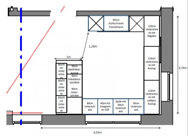 - Ich habe jetzt den Beitrag zu toten Ecken gelesen: Ein Augenöffner! Danke! Also da wir ja generell eine große Küche haben dann eher links und rechts 2x60cm Unterschränke mit Auszug und in der Mitte ein großer 120cm Unterschrank?