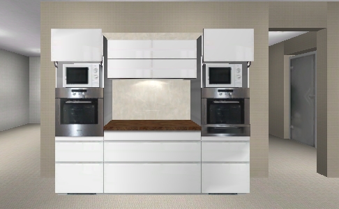 Planoben dann nur einen 240 cm Block, rechts und links die Hochschränke für BO bzw. Einbau-KVA (gibt es den schon? Der erhöht den Preis ja auch ganz gut). Dazwischen dann einen 120er Auszugsunterschrank .. hier denke ich vorzugsweise Geschirr und Besteck an. Da kommt man nämlich auch ran, wenn jemand kocht. So wie natürlich Tassen und Alltagsgläser im Hängeschrank.