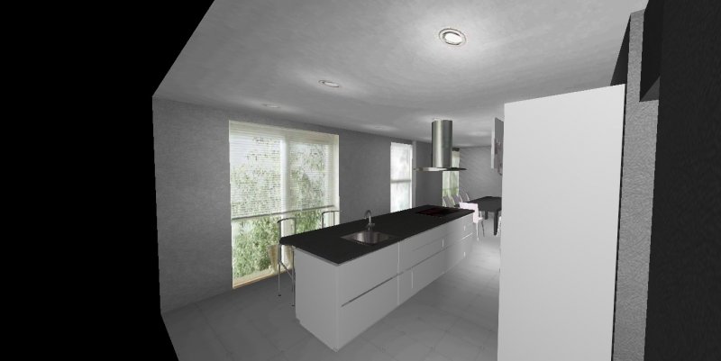 Die komplette Raumlänge kann ich im Alnoplaner leider nur andeuten, weil er nur 9m zulässt.