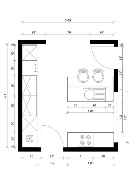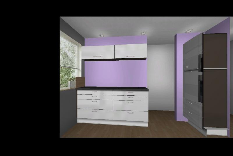 Ich selbst bin davon noch nicht so überzeugt, da die Spüle Richtung Wand zeigt und ich der Meinung bin, dass man sich zwischen den beiden hohen Schränken eingeengt fühlt. Aber wahrscheinlich bin ich schon zu fixiert auf die andere Planung...