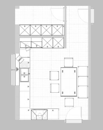 Also wenn die Speisekammer wegkommt und du unbedingt was mit Insel willst, wäre eine Überlegung die U-Form zu machen.
