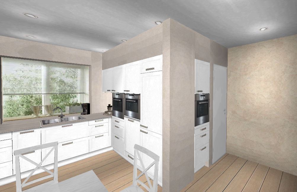 Bis jetzt hatte ich auch eine L-Küche und irgendwie hatte ich schon von vornherein Lust auf etwas inseliges (eher zum arbeiten als zum sitzen), sodass die Vergrößerung des Raumes die Möglichkeit für eine Halbinsel wieder ins Rollen brachte, bzw. mir neue Hoffnung gab.