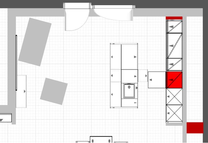 Es wird auf jeden Fall eine Spülinsel werden. Weiterhin hätte ich gerne eine hochgestellte Spülmaschine. Aber da habe ich ein Problem: ich finde keinen geeigneten Platz dafür: entweder dicht an der Spüle aber dann ist die Klappe im Weg oder in die planobere Ecke, aber dann ist sie weit weg von der Spüle.