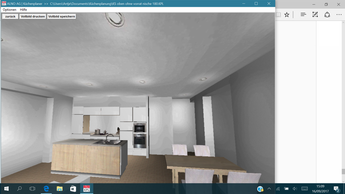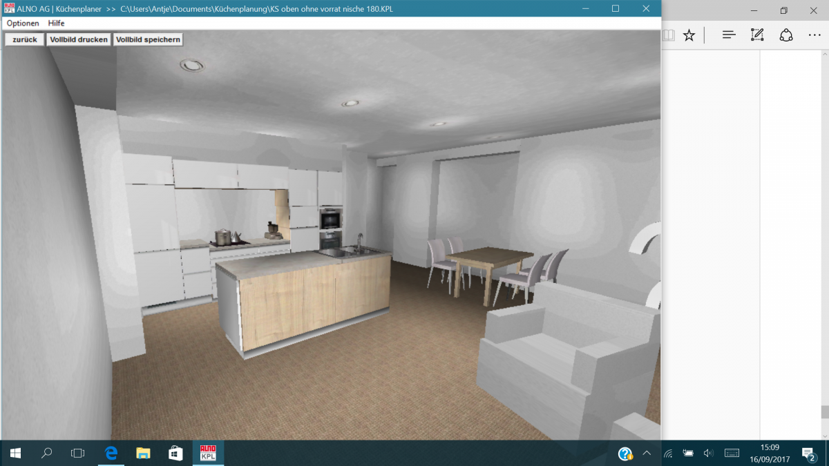 Alno Plan mit einigen Änderungen. Der Plan folgt der Johaennes-Kochnische.