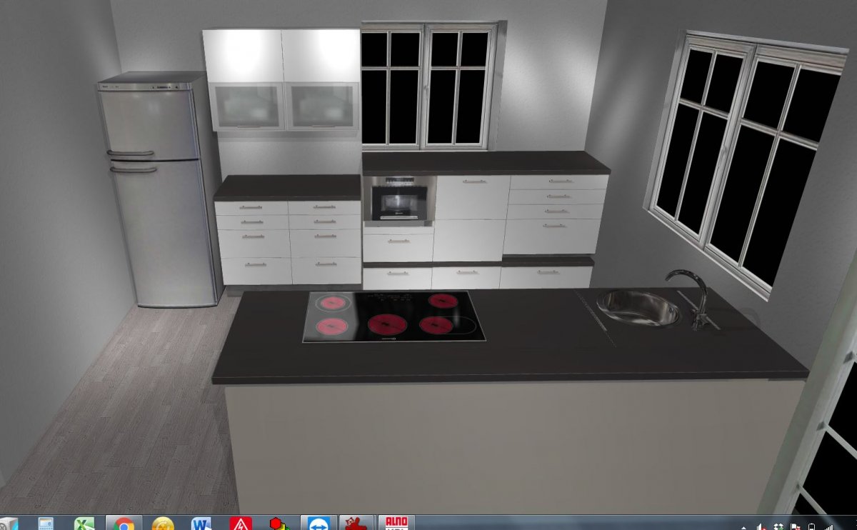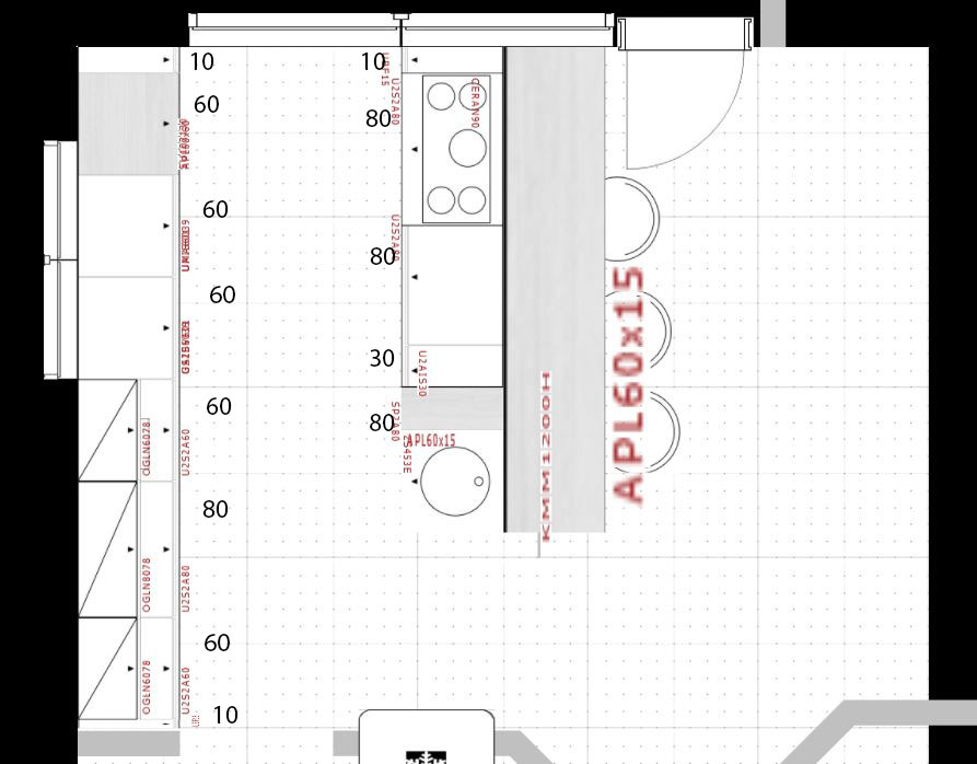 #30 mit normalen Hängeschränke oder Hochschränke, mehr Luft für den Kühlschrank, damit er aufgehen kann und Tausch Spüle-Kochfeld, wäre wahrscheinlich gut.