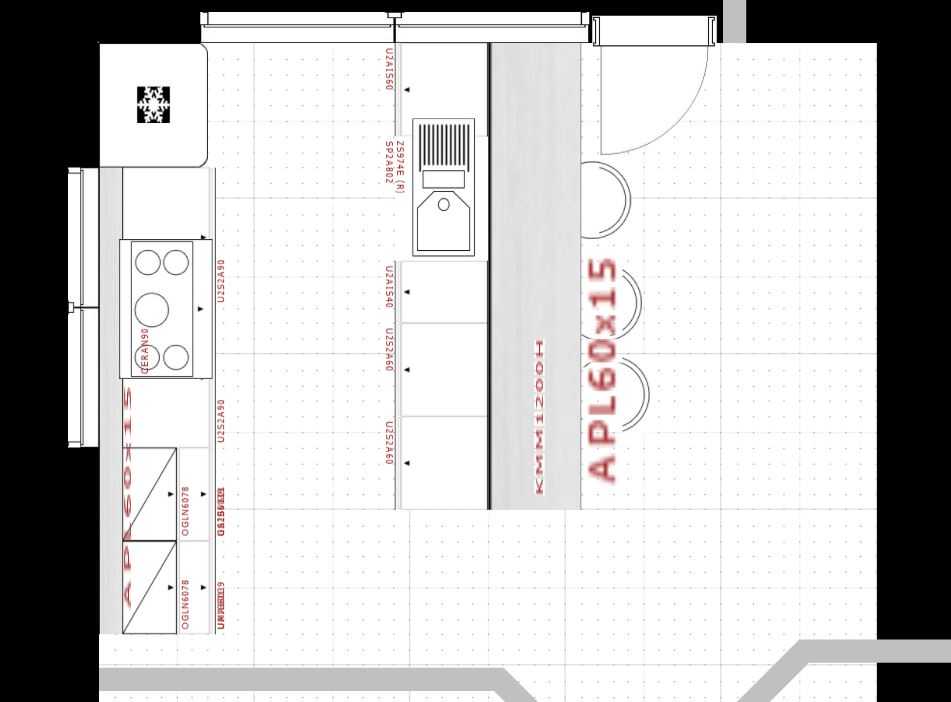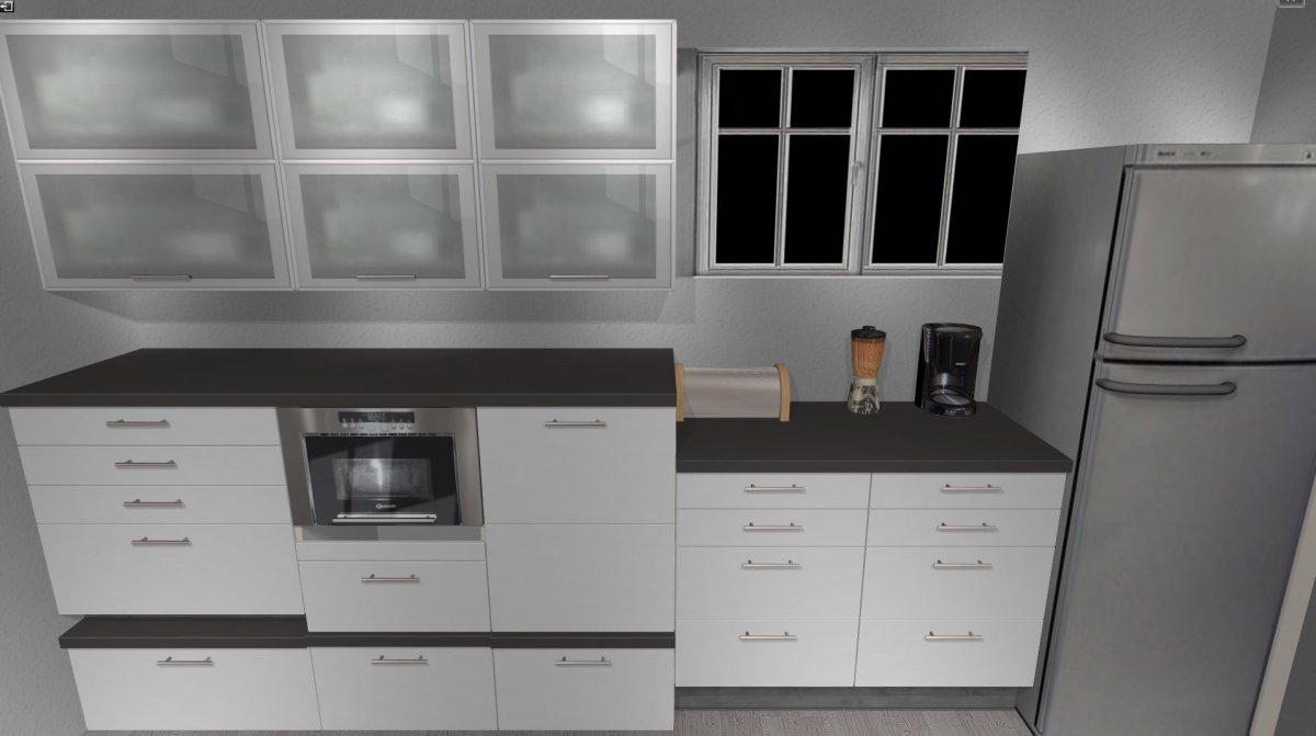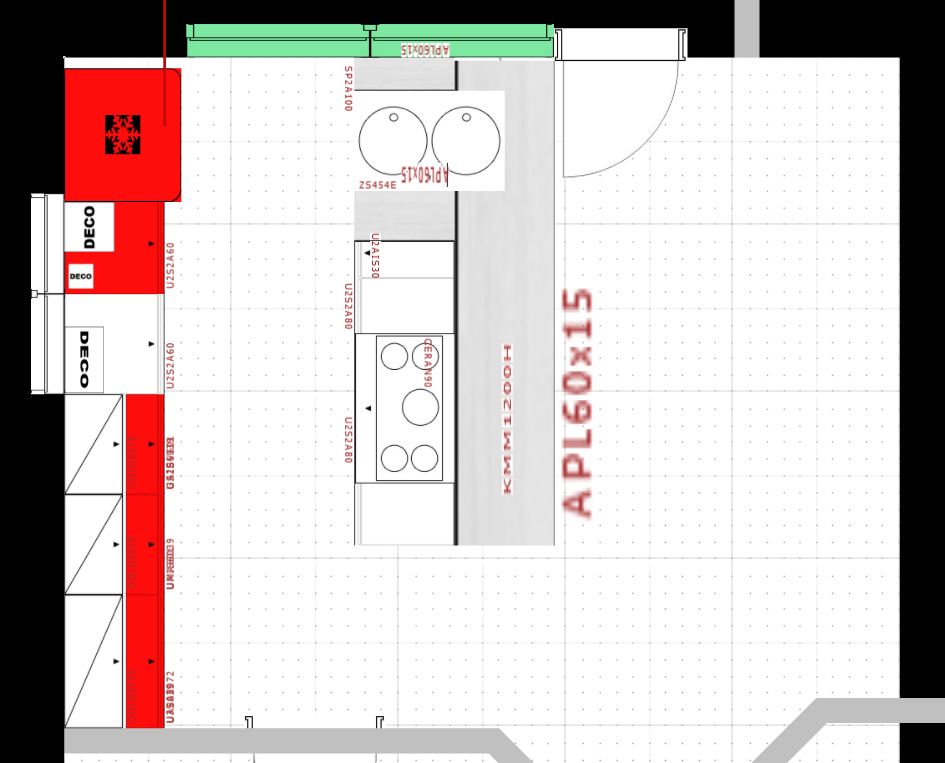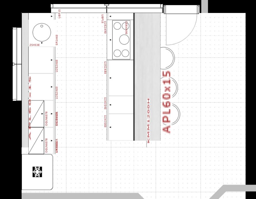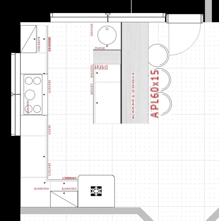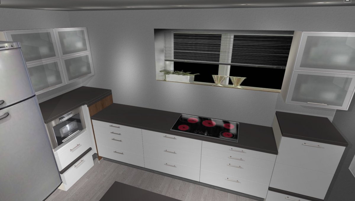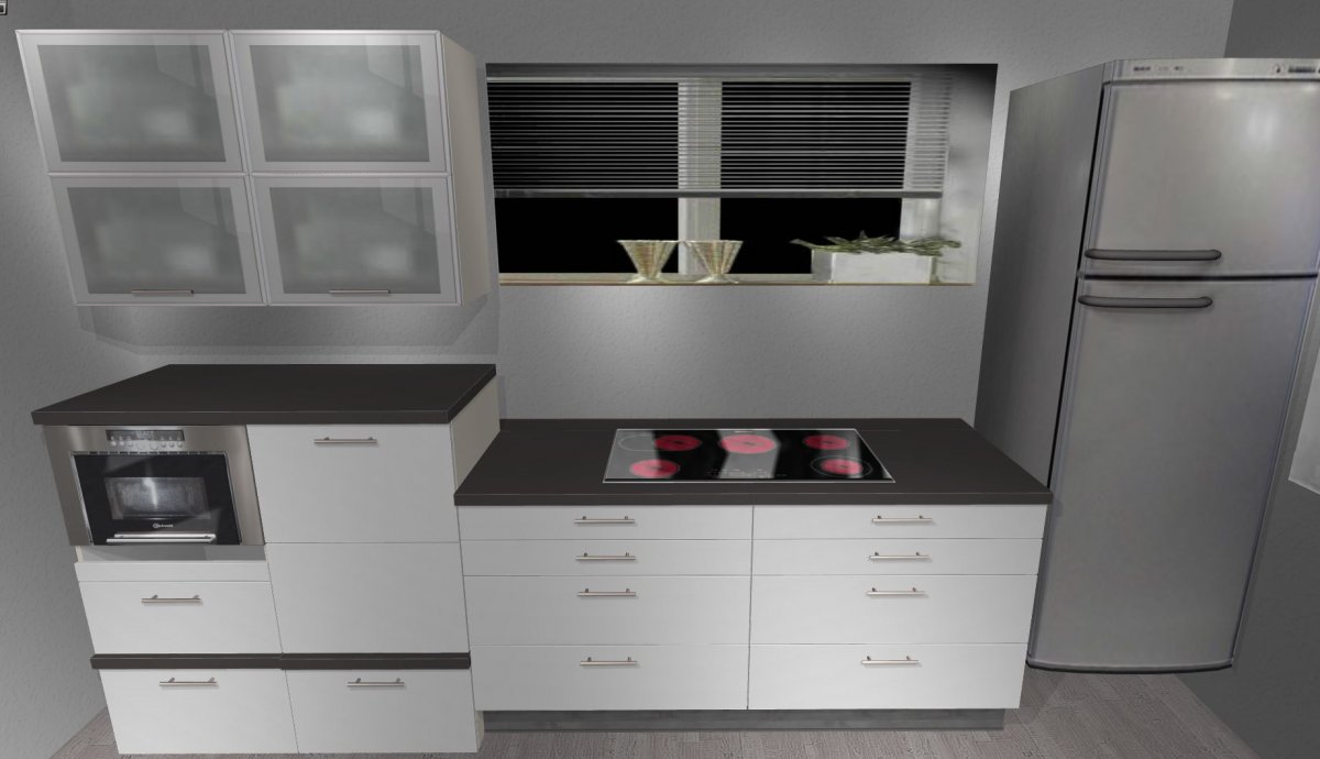 Das mit dem Kühlschrank wäre in der Ecke tatsächlich arg eng geworden. Rechnerisch müsste es gehen, aber naja... Daher jetzt eure Vorschläge vermischt und den Kühlschrank an neuer Stelle...