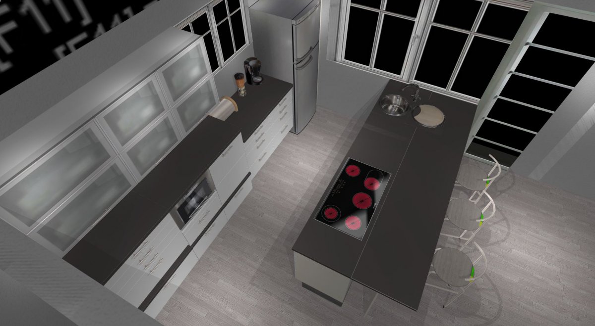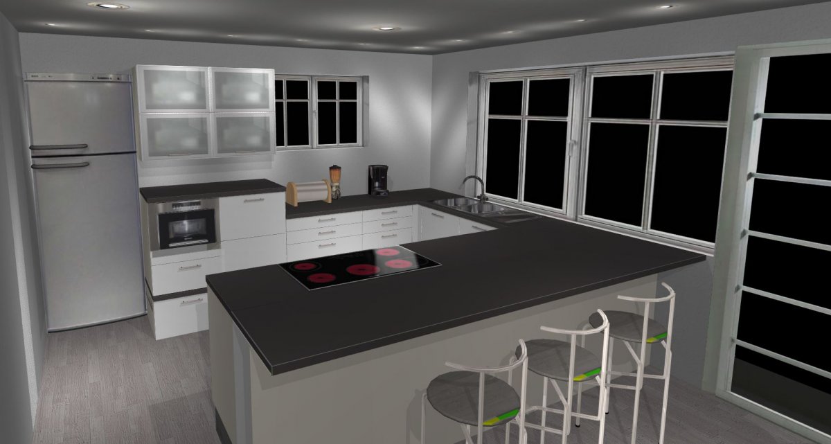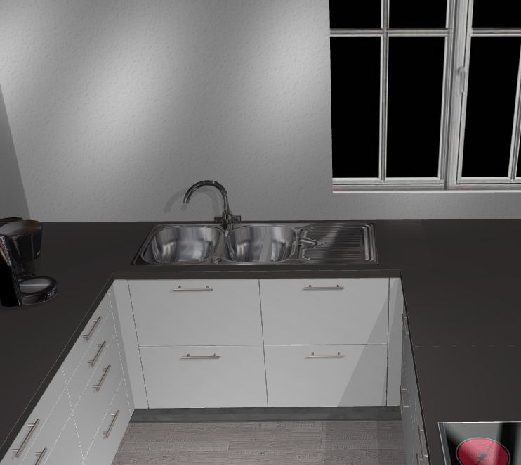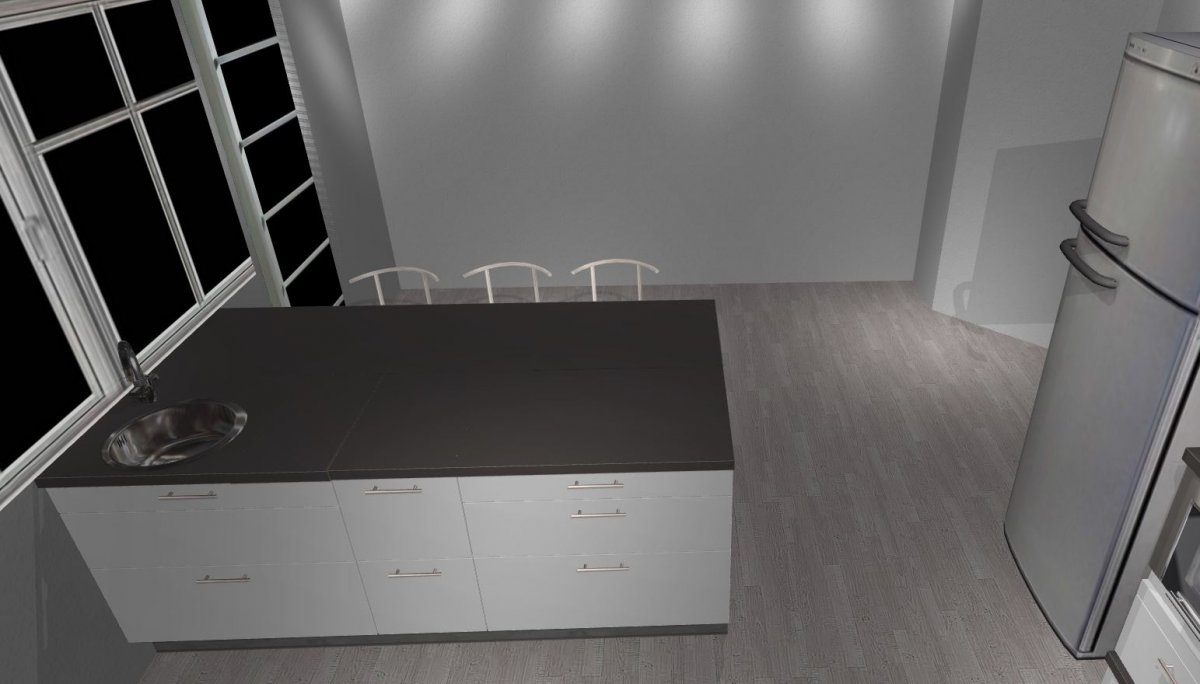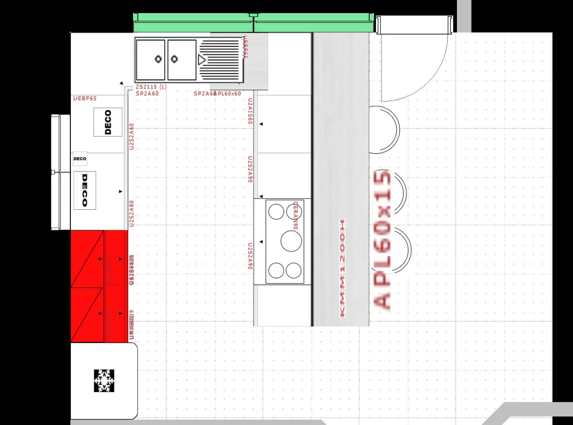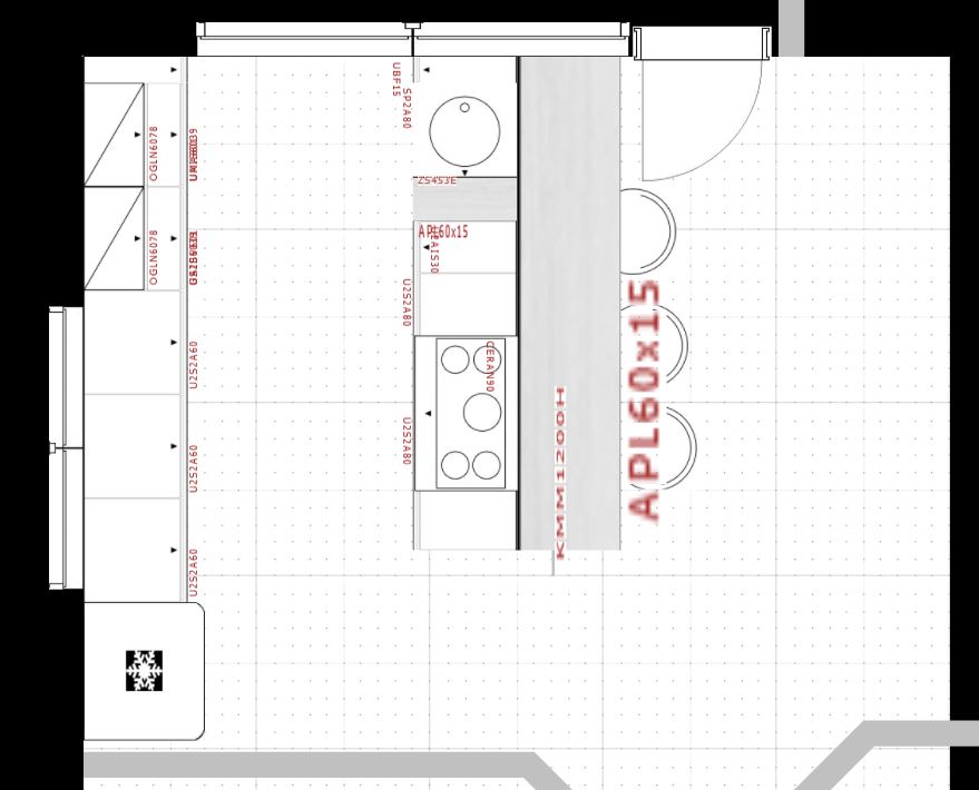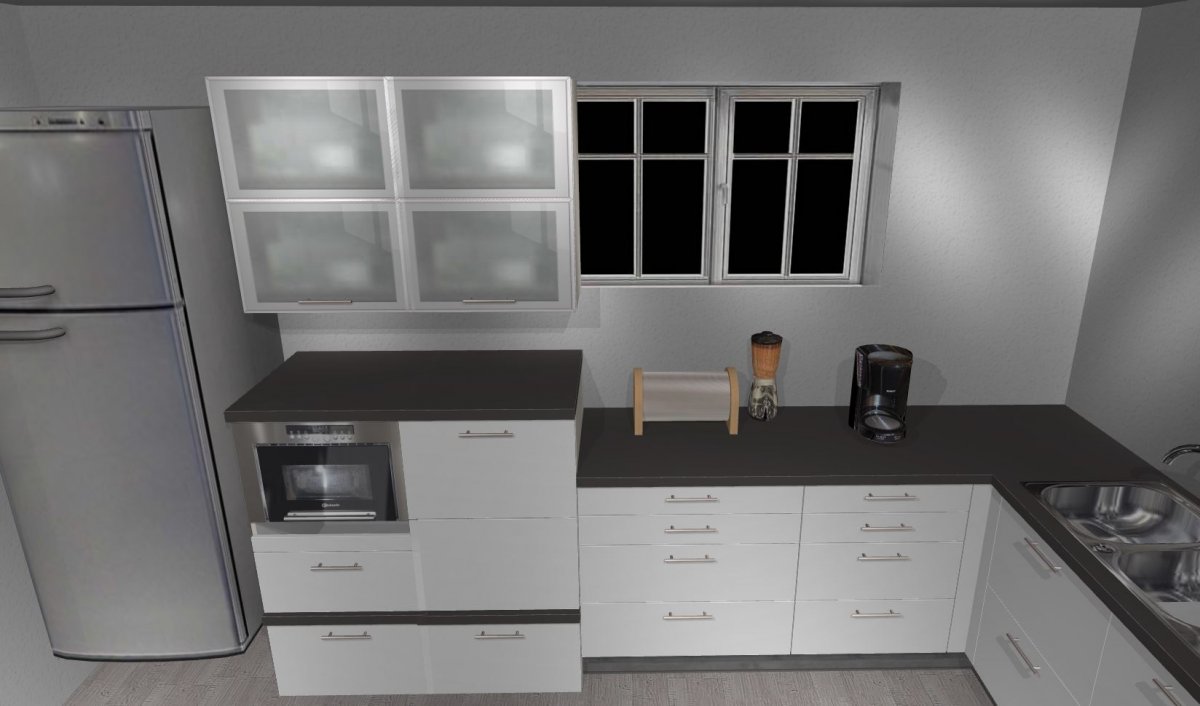 Das mit dem Kühlschrank wäre in der Ecke tatsächlich arg eng geworden. Rechnerisch müsste es gehen, aber naja... Daher jetzt eure Vorschläge vermischt und den Kühlschrank an neuer Stelle...