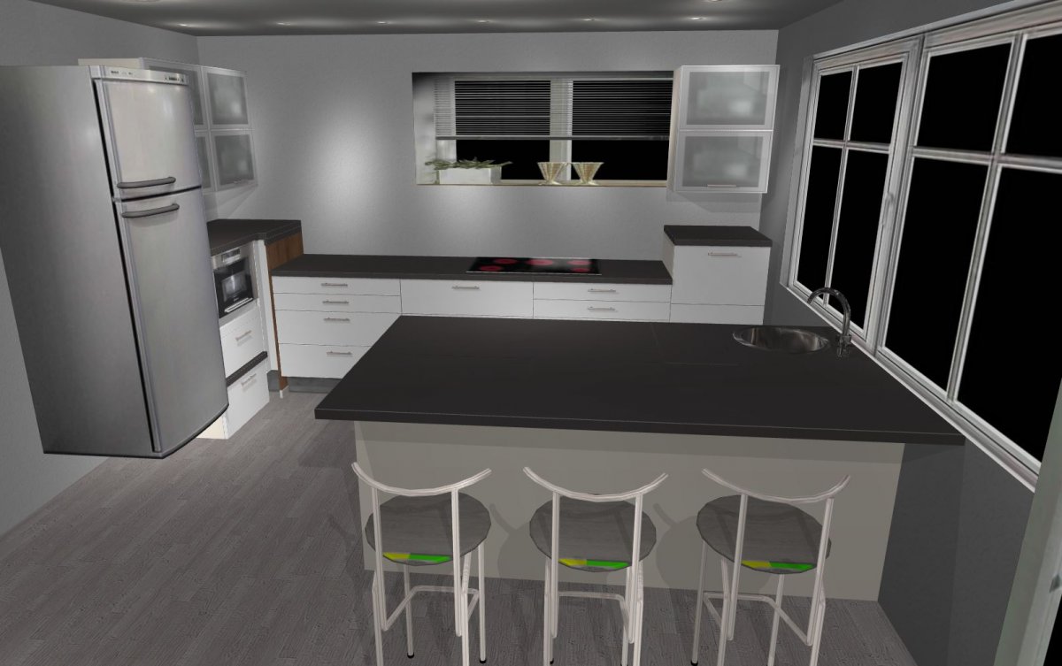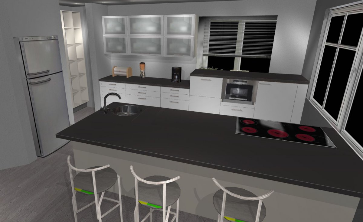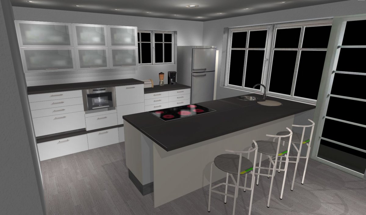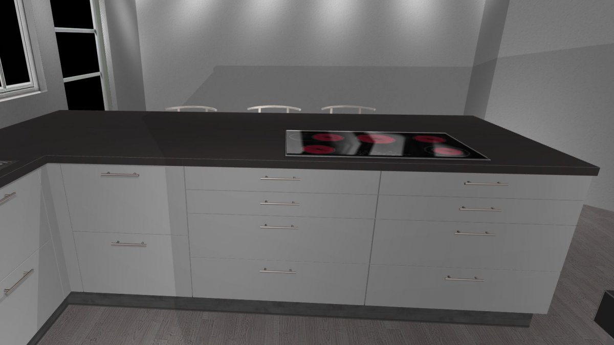 Den Kühlschrank hatte ich auch deshalb umbaut in der Mitte vorgeschlagen, damit es optisch besser integriert ist und die Problematik mit dem Öffnungswinkel umgehst, damit die Gemüseauszüge zum Reinigen raus können und auch bei Einräumen größere Öffnungswinkel möglich ist.