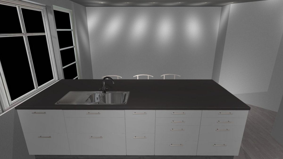 Bei der letzten Version 2 wären unterm Fenster statt 3x60 besser 2x90 US, billiger und man bekommt mehr rein, da für die Auszüge und Korpusbreiten pro Schublade ca. 8 cm wegfallen.