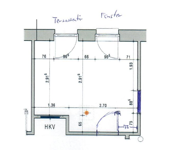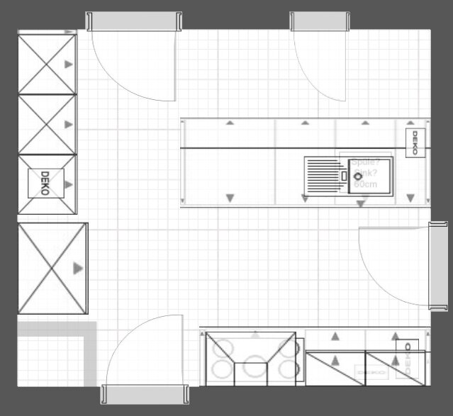 Im Küchengrundriss habe ich dies bereits „angepasst“. Ebenfalls ist das Fenster nicht fix. Hier sind wir am überlegen auf ein schmaleres bodentiefes Fenster zu wechseln. (Mauermaß von ~58cm ) Das ist auch so schon in der ALNO Planung berücksichtigt.