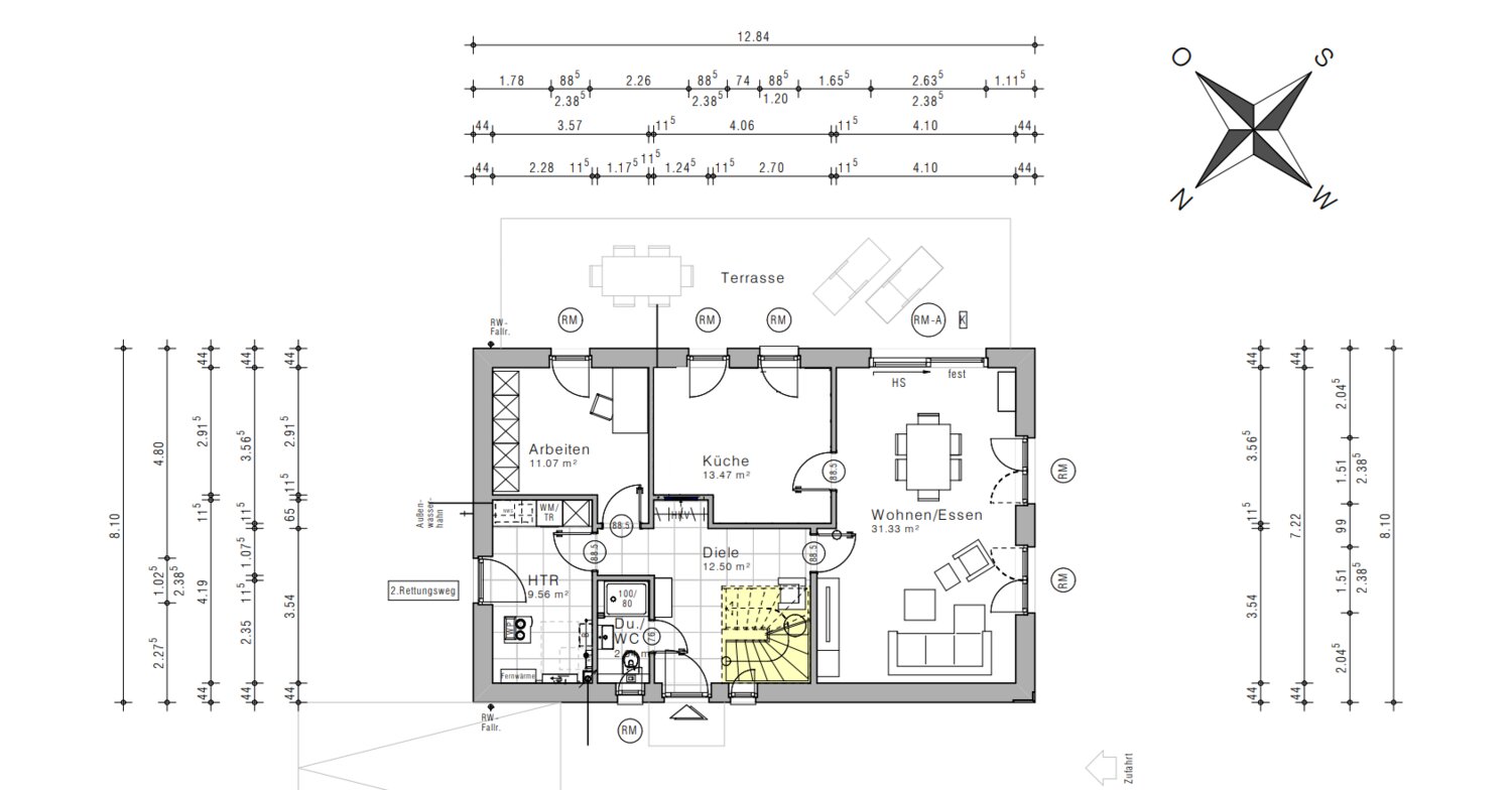 Die angehängten Zeichnungen des Grundriss EG sind noch nicht ganz korrekt. Anstatt ins Wohnzimmersoll eine Tür direkt in den Flur.