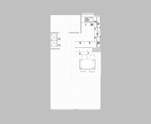 Heizkörper sind nicht im Küchenbereich sondern im Wohnbereich an der großen Fensterfront (Deckenhohe Fenster - lies sich im Planer nicht darstellen).