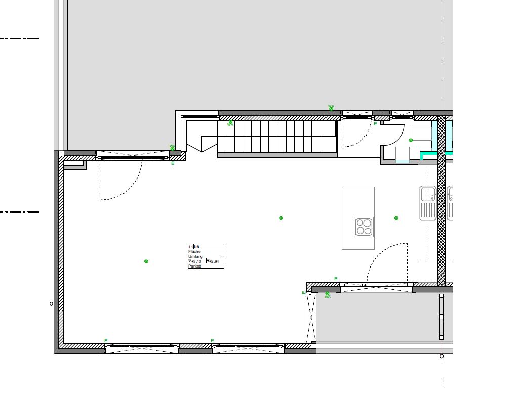 Auf der Zeichnung oben ist keine Tür sondern der Durchgang an der Treppe/WC vorbei zur Dachterrasse. Lässt sich halt in dem Planungstool so nicht darstellen.