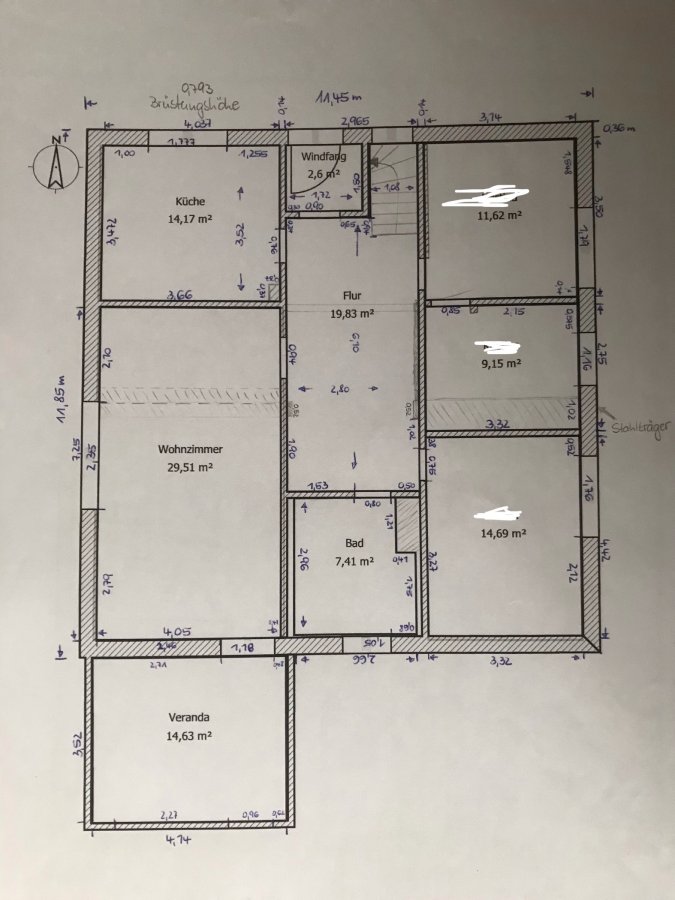 Ich habe meine Hausaufgaben gemacht und einen Grundriss von unserem Erdgeschoss rausgesucht. Die sind von mir selbst gezeichnet, da wir zum Hauskauf nichts dazu bekommen haben. Ich sehe aber auch, dass die Pläne nicht ganz aktuell sind. Der Windfang ist weg und gleich neben der Eingangstür, über der Kellertreppe, befindet sich nun die Treppe zum oberen Geschoss. Auf den beiden anderen Fotos sind die Fotos aus der Sanierung zu sehen, die Tür ist natürlich auch ersetzt worden. Auf meinem Profilbild sieht man meine aktuelle Küchenzeile (Nolte Küche in eisblau mit ahornfarbener Arbeitsplatte ).