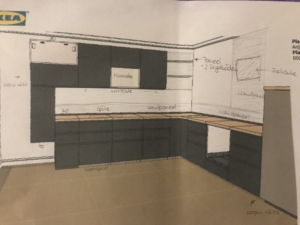 Ich war mit meiner Vorstellung, wie die Küche werden könnte, in zwei Küchenstudios, da mir das aber eigentlich zu teuer ist, bin ich nun bei Ikea gelandet.