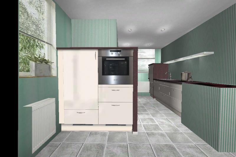 Ich würde allerdings wohl auf den hochgestellten Backofen verzichten und dadurch die Hochschränke auf 2 reduzieren. Dann könnte die Spüle noch etwas weiter nach planrechts.