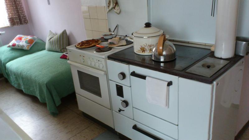 Was/wie wird gekocht? (Alltagsküche, Menüs, Snacks usw) : Es wird täglich warm gekocht für zwei Personen, häufig werden große Mengen Obst eingemacht, es wird mindestens wöchentlich gebacken. Außerdem gibt es am Wochenende Mittagessen, Kaffee & Kuchen, Abendbrot für bis zu 20 Personen