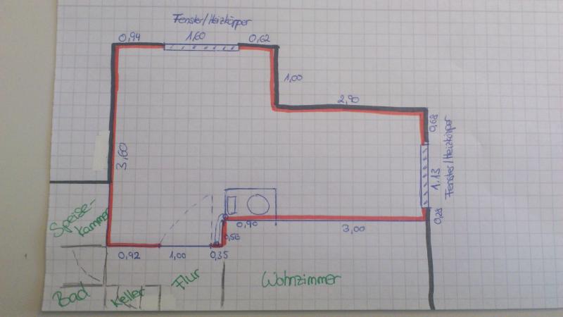 Die Wände sind leider alle etwas schief und krumm, die Maße lassen mich verzweifeln und da ich seit Kindheitstagen die Küche so kenne, wie sie bislang war, fehlen mir noch die Ideen.