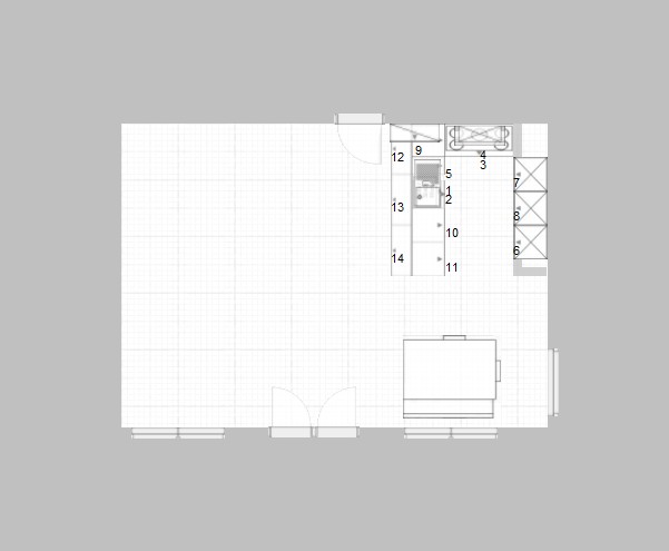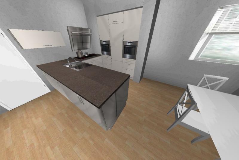 Auf der Arbeitsplatte steht bei mir in der Regel nur die Kaffeemaschine nichts herum. Grundriß und Alno-Raum-Datei habe ich angehängt.