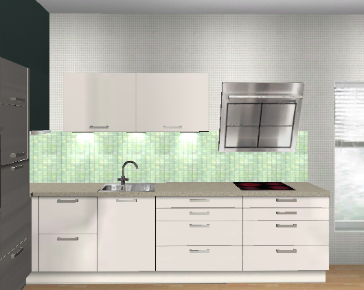 Ich habe jetzt ein paar Bilder meiner bisherigen Ideen angehängt. Im Prinzip gefällt mir die Lösung mit der eingekofferten Hochschrankwand am besten. Mich stört daran nur, dass es keine zusätzliche Abstellfläche für z. B. Kafeemaschine gibt. Die Lösung mit den beiden Hochschränken außen und Arbeits- (oder besser Abstellfläche) in der Mitte würde das bieten, sieht aber m. E. bei 2,40 m Gesamtbreite nicht wirklich gut aus.