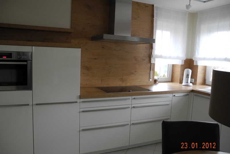 Allerdings, bei 75 cm Korpushöhe und 60 cm Hängeschrankhöhe, wird der Nischenabstand zwischen APL und Unterkante Hängeschrank 71 cm (75-4 cm APL), wenn die Hängeschränke auf derselben Höhenlinie enden sollen, wie die Hochschränke.
