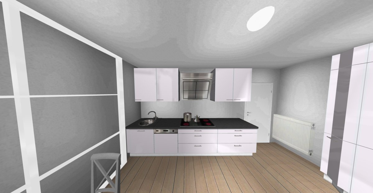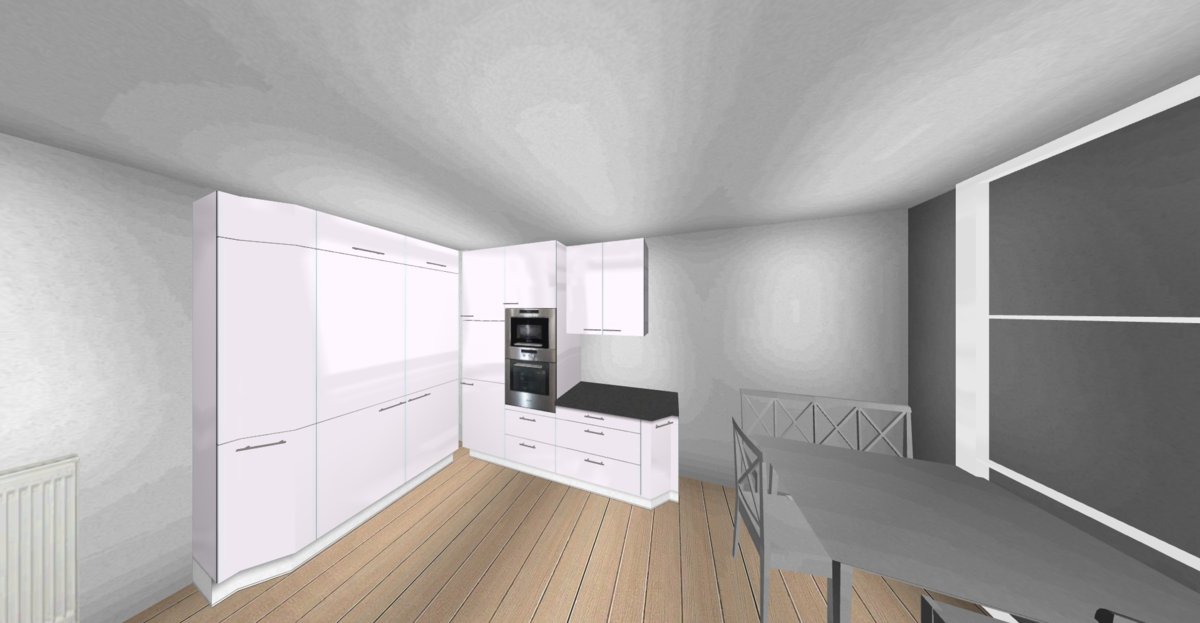 Ich weis nicht ob die kleine seite mit den Hochschränken zu wuchtig wird. ggf. kommt sich ein Stauraum mit den Kühlschrank ins Gerangel beim öffnen? Da sollte eine Blende eingesetzt werden. Für die hohen Schränke nutz ich eh nen Klapphocker.. :o)
